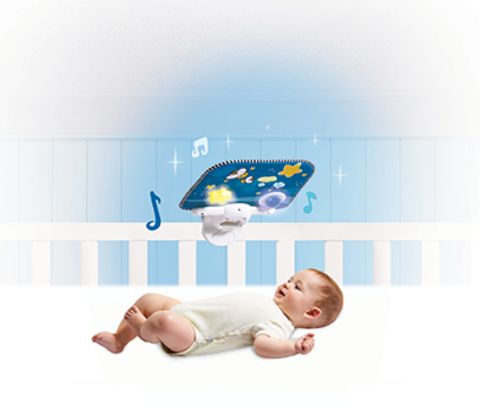 Позвольте ребенку наслаждаться успокаивающей музыкой и наблюдать за мерцающими огоньками в то время, что он лежит в кроватке.