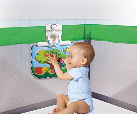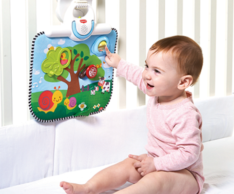 На самой панели расположена погремушка и разнообразные развивающие элементы.