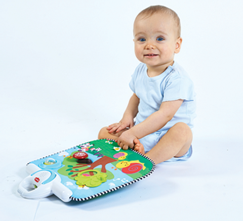 Познакомьте ребенка с гремящими и музыкальными элементами игрушки.