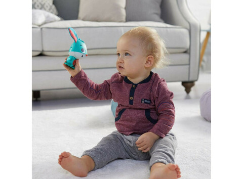 Интерактивная развивающая игрушка-кролик для малышей старше 1 года. Игрушка оснащена несколькими сенсорными датчиками, которые позволяют ребенку смоделировать 7 увлекательных обучающих игр: