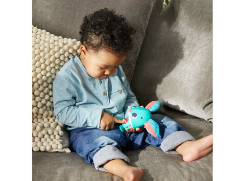 Корпус игрушки имеет различную текстуру, световые элементы и текстильные шуршащие детали, что способствует развитию комплексного восприятия, тренировке мелкой моторики рук, усвоения принципа причинно-следственной связи, а также помогает социализации малыша. Лёгкий вес и компактный размер, позволяют ребёнку брать игрушку с собой на прогулку и проводить с ней долгое время.