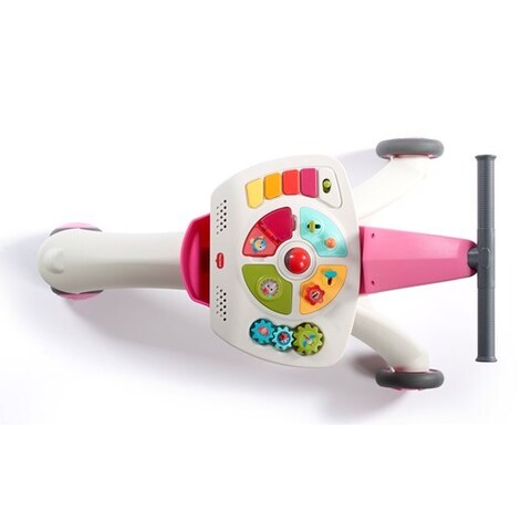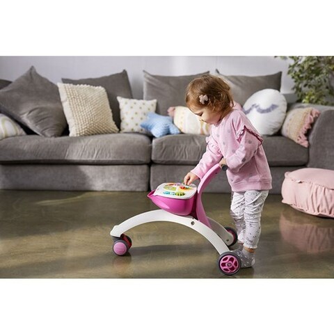 Каталка состоит из 2-х взаимодополняемых частей, первая помогают малышам безопасно осваивать навыки передвижения, а вторая гармонично развиваться и весело проводить время.Универсальная каталка-беговел имеет 3 колеса-ролика. Передний ролик оснащен ограничителем скорости, который обеспечивает безопасность при первых шагах ребенка, кроме того он поворачивается на 360 градусов. Все колеса имеют мягкое покрытие для снижения шума. На корпусе каталки есть контейнер для перевозки игрушек.