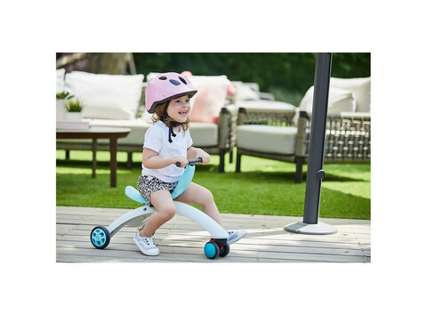 Каталка состоит из 2-х взаимодополняемых частей, первая помогают малышам безопасно осваивать навыки передвижения, а вторая гармонично развиваться и весело проводить время.Универсальная каталка-беговел имеет 3 колеса-ролика. Передний ролик оснащен ограничителем скорости, который обеспечивает безопасность при первых шагах ребенка, кроме того он поворачивается на 360 градусов. Все колеса имеют мягкое покрытие для снижения шума. На корпусе каталки есть контейнер для перевозки игрушек.