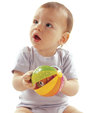 Это красивая и безопасная игрушка, ее можно не только держать в ручках, но и просто катать по полу, как мячик, а затем ползти за ней. Перемещающиеся дольки можно закрыть так, что червячка не будет видно, но стоит раздвинуть дольки - и снова червячок улыбается и отражается в зеркальных поверхностях шара.