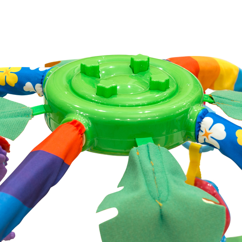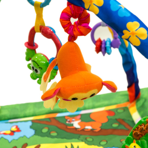 Музыкальная игрушка содержит в себе до 5 минут меняющейся музыки. Музыкальный блок развивающего коврика расположен на стыке дуг с игрушками.