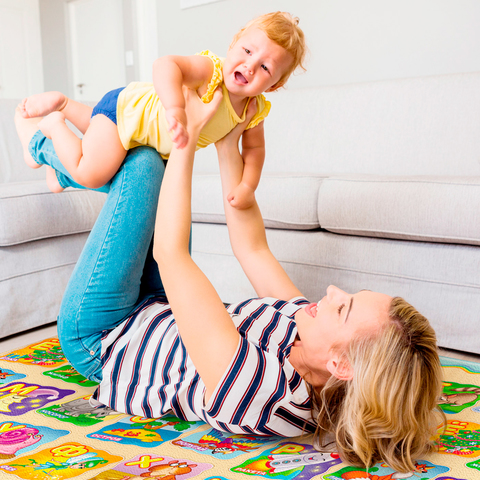 - От рождения до 9 месяцев: Во время периода ползания защищает запястья и коленки ребенка от ударов об пол. Мягкая поверхность.