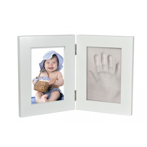 Рамочка двойная настольная с отпечатком из глины в белом цвете.
