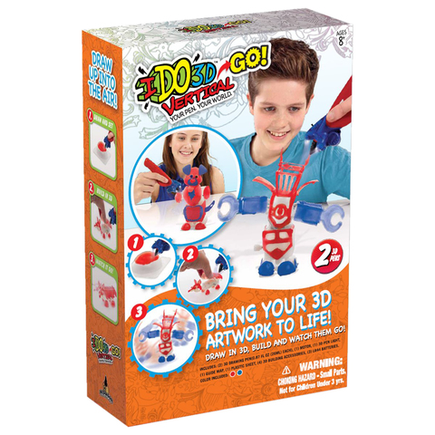 Необычная ручка 3D "Вертикаль GO" позволит создавать не простые двухмерные рисунки, а настоящие скульптуры и невероятные конструкции. В набор входят ручки синего и красного цвета, они заправляются пастой, которая затвердевает под светом особой насадки. Специальная паста, которой пишут ручки 3D нетоксична и безопасна для детей.