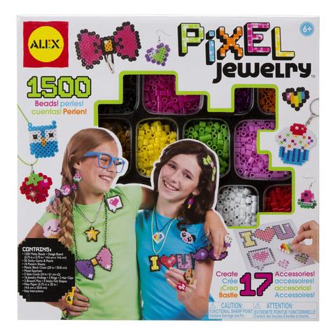 - Составляющие этого набора помогут юным модницам своими руками создать 17 вариантов различных украшений, напоминающих картинки из пикселей.
