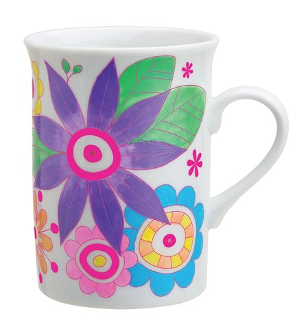 Теперь на самом видном месте на полочке в кухонном шкафу будет стоять яркая фарфоровая кружка с разноцветными узорами в виде цветочков. Ведь это изделие будет разукрашено вашим ребёнком самостоятельно с помощью насыщенных красок для керамики и кисточки из этого набора.