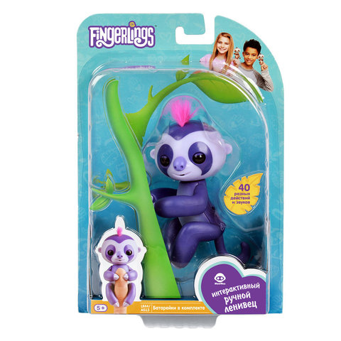 Интерактивный ручной ленивец "Мардж" из серии Fingerlings от бренда WowWee вызовет восторг у любителей экзотических зверюшек. Удивительная игрушка "Фингерлингс" предстает в образе обитательницы тропических лесов. Ее выразительная мордочка, большие темные глаза, фиолетовая расцветка и контрастный ярко-розовый хохолок никого не оставят равнодушным. Игрушечная зверюшка от "ВовВи" цепляется лапками или хвостиком за палец руки и активно реагирует на все происходящее.