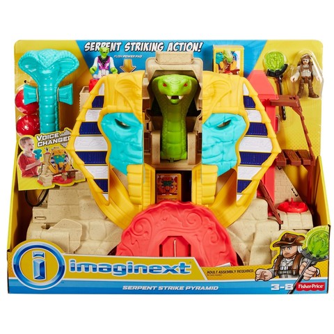 Игровой набор Imaginext «Пирамида». Поиски сокровищ — дело серьезное! Отправляясь в недра пирамиды «Прыжок змеи»” от Imaginext, будьте осторожны: змеиный царь не отдаст свои богатства просто так.