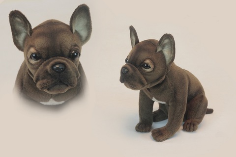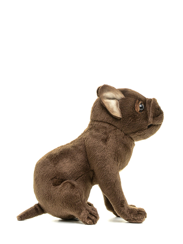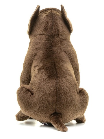 - В этой мягкой игрушке любой ребенок легко узнает очаровательную собачку породы французский бульдог с коричневой шерсткой, складочками и белыми пятнышками.