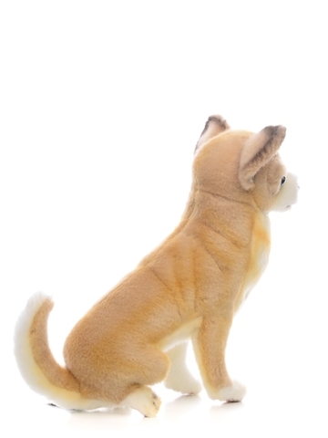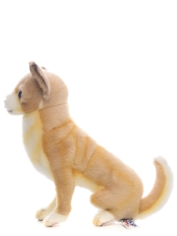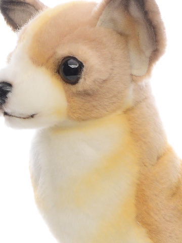 - В этой мягкой игрушке любой ребенок легко узнает очаровательную собачку породы Чихуахуа с рыжей шерсткой и белыми пятнышками на ней.