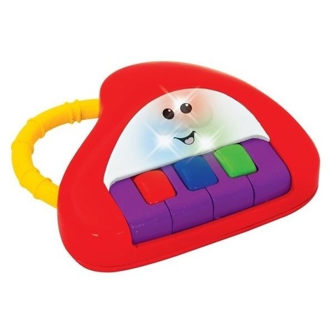 Музыкальный слух можно развивать с самого рождения. В набор входят три музыкальных инструмента: пианино, саксофон и скрипка. Самое первое пианино для малыша помещается на крохотной игрушке с держателем от компании Kiddieland. На таком замечательном пианино можно играть даже лежа. На клавиатуре этого пианино всего одна октава. Малыш легко запомнит ноты, благодаря крупным разноцветным кнопкам.