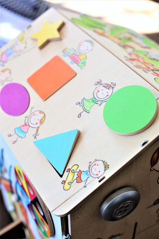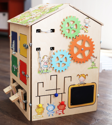 Интерактивный бизидом - это игровой комплекс, состоящий из 30 развивающих деталей. Каждая сторона Домика погружает ребенка в уникальную развивающую среду. Все интерактивные элементы логически связаны с красочным рисунком, расположенным на сторонах домика. С помощью тематической игры, красочных изображений ребенок развивает координацию движений рук, логику,скорость мышления, эстетическое восприятие окружающего мира.