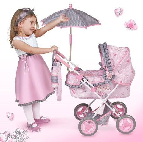 - Шикарная игрушечная коляска станет замечательным подарком для маленькой девочки.