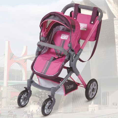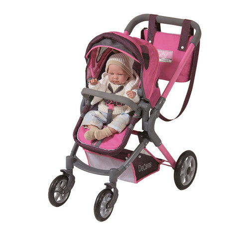 Ручка коляски прорезинена и на нее вешается сумочка, которую можно использовать отдельно. Люлька коляски снимается и может использоваться как переноска для куколки, спинка прогулочного блока фиксируется в двух положениях, а сам блок оборудован трехточечными ремнями безопасности. Внизу находится корзинка для покупок.