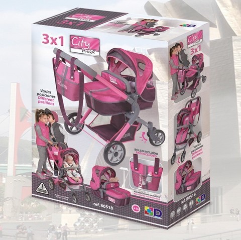 Очень красивая коляска трансформер 3 в 1 серии Сити, выполненная в современном стиле, в насыщенно-розовом и бордовом тонах, не оставит равнодушной ни одну девочку.