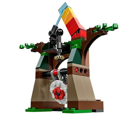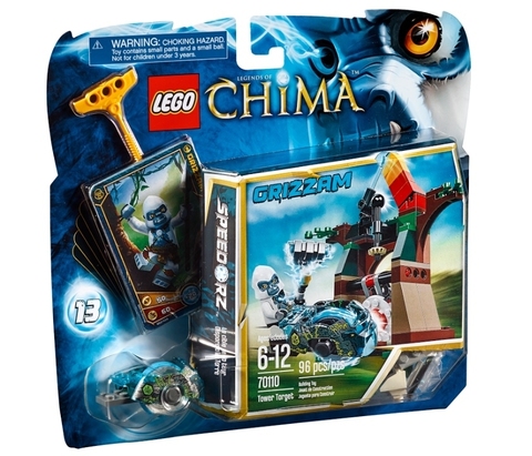 Если точность не подведёт Гриззама, то он сможет запустить секретный механизм, который обрушит башню из разноцветных кирпичиков. В набор Лего 70110 входит 1 минифигурка Гриззама, 2 единицы оружия: копьё и булава, прозрачный чимацикл, пусковой стержень, модификатор, 6 кристаллов с энергией Чи и 5 игровых карточек.