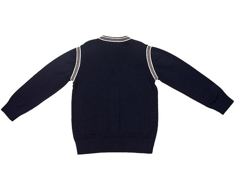 Стильный вязаный жакет для мальчиков на пуговицах. V-образный вырез, спереди два функциональных кармана. Застежка на пуговицы.