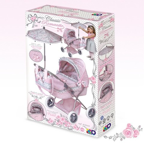 Коляска "Романтик" с сумкой и зонтом розового цвета - это мечта любой девочки. Она оснащена всем необходимым для игры в дочки-матери. Тут все как настоящее: складной навес и зонтик от солнца и дождя, багажная корзина для вещей внизу, сумка для детских принадлежностей, прикрепленная к ручке, чехол на коляску, защищающий от ветра и холода куклу-младенца. Ручка регулируется по высоте под рост хозяйки.