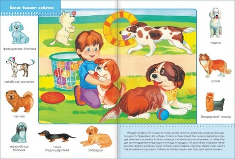 Из книги ребенок узнает, как кормить, играть и ухаживать за питомцами. Узнают породы собак и кошек, познакомятся с бурундуком или тритоном. Подобные занятия формируют у ребенка нравственные принципы, умение правильно вести себя в окружающем мире.