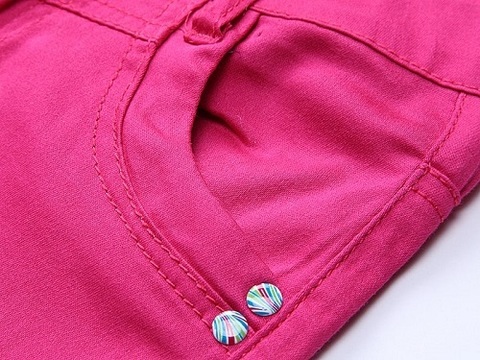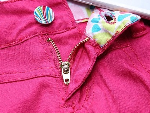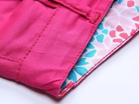 Текстильные летние брюки. Изнаночная сторона пояса декорирована принтованной тканью. Пояс регулируется внутренней резинкой.