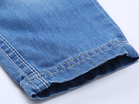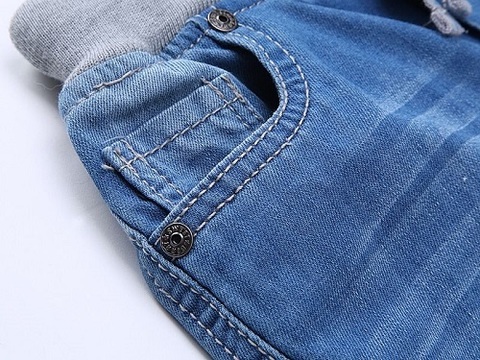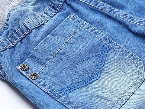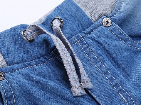 Джинсы из качественной джинсы на эластичном трикотажном поясе на резинке, который дополнительно регулируется шнурком.