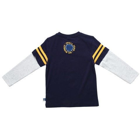 Футболка с длинным рукавом для мальчика. Декорирована ярким принтом и велюровой аппликацией. Удобная застежка на плече на кнопки.