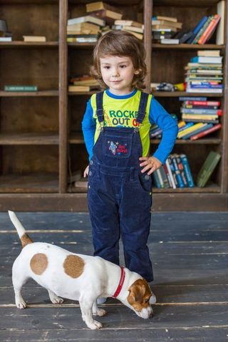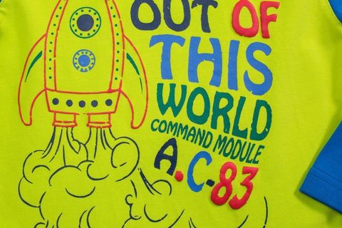 Яркая футболка с длинным рукавом для мальчика. Горловина из трикотажной эластичной резинки контрастного цвета. Футболка декорированна весёлым, ярким принтом.