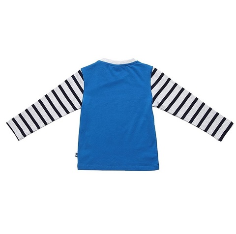 Яркая футболка с длинным рукавом для мальчика. Декорирована ярким принтом и аппликацией. Удобная застежка на плече на кнопки.