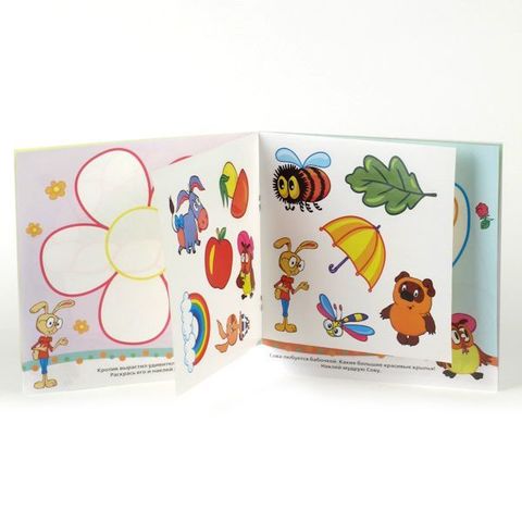 Раскраска с наклейками «Рисуем пальчиками. Винни-Пух» будет интересна прежде всего самым маленьким. Раскраска сделана по мотивам одноименного мультфильма. В раскраске кроме красочных изображений самих персонажей мультика есть ещё и крупные картинки различных предметов, которые малыш должен раскрасить пальчиками.